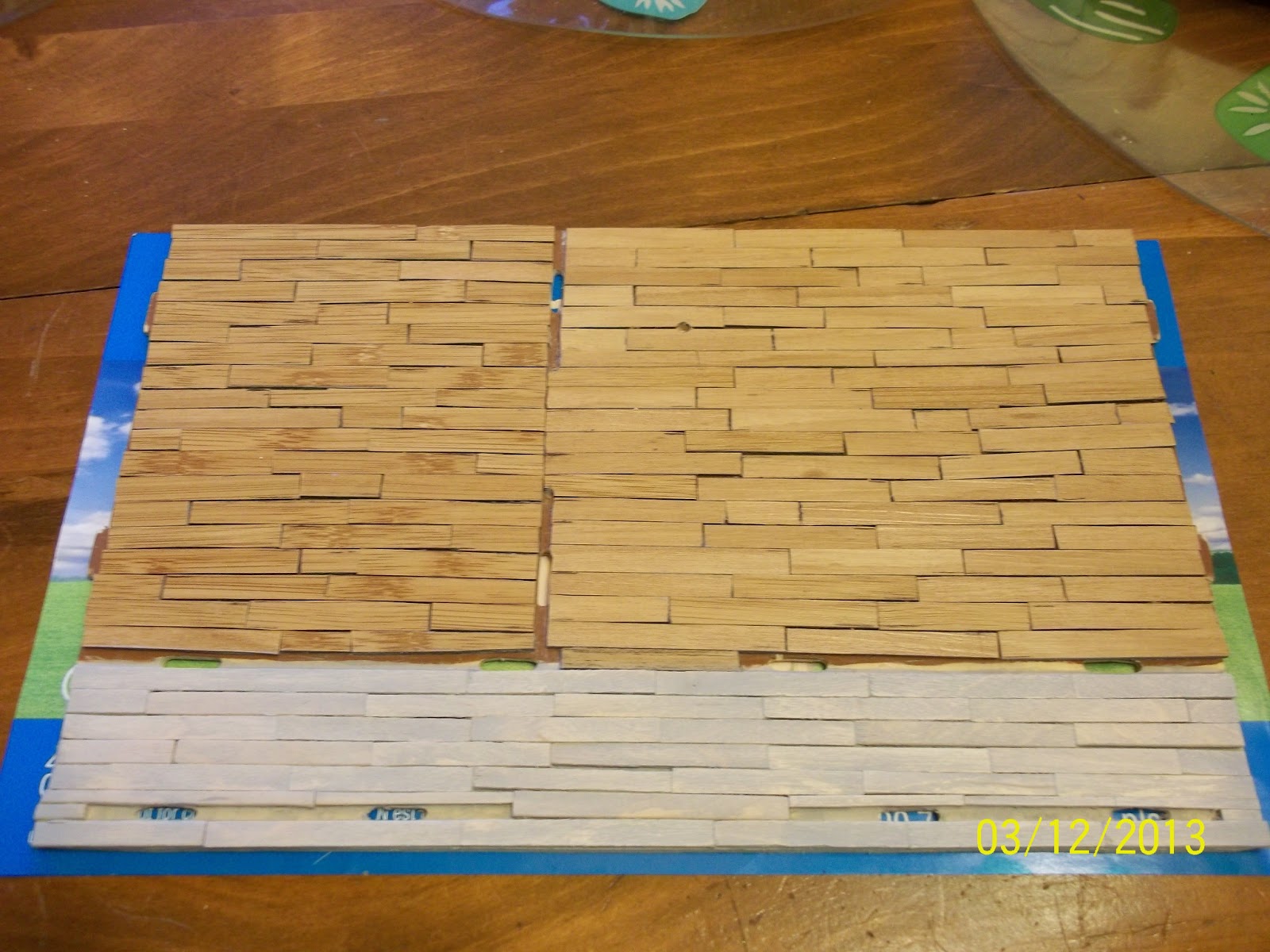 Sooooo, back to our project. I was so excited to show Tonnie the dollhouse kit that I bought. With anticipation she waited for the unveiling. I took the plastic off of my kit and it was then that I realized that my purchase really wasn't a steal. It was about priced right for the small size that it was. Tonnie didn't want me to get discouraged (as I don't tend to get excited about much), so she said, "Okay, it's a bit small but we can make it work. We can learn from this and work our way up to a big one". That sounded reasonable. We "dry" fitted it together, ( I learned a bit by doing alot of research on the net and reading other peoples blogs). And we decided to start with the walls and the floors.... through trial and errors we finished them.... Life, called Tonnie away for a few so I am left to my own devices for now. I'll try to get some pictures taken and posted soon, from this point on... I'm hoping to tackle the roof tomorrow. Hopefully all goes well...